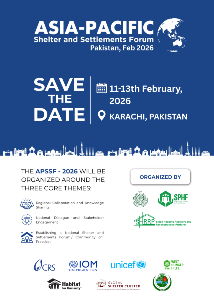 The Government of Sindh, in collaboration with the National Disaster Management Authority (NDMA), will host the Asia Pacific Shelter and Settlements Forum (APSSF) 2026 in Karachi, Pakistan, from 11–13 February 2026.